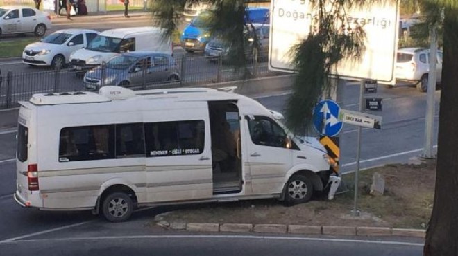 Alınan bilgiye göre, Muhammet Demirel'in kullandığı İzmir-Menemen arasında sefer yapan 35 HIH 91 plakalı yolcu minibüsü, Naldöken Kavşağı'nda önünde seyreden Ahmet Varhan idaresindeki 35 AF 4735 plakalı minibüs ile yol kenarındaki trafik levhasına çarptı.