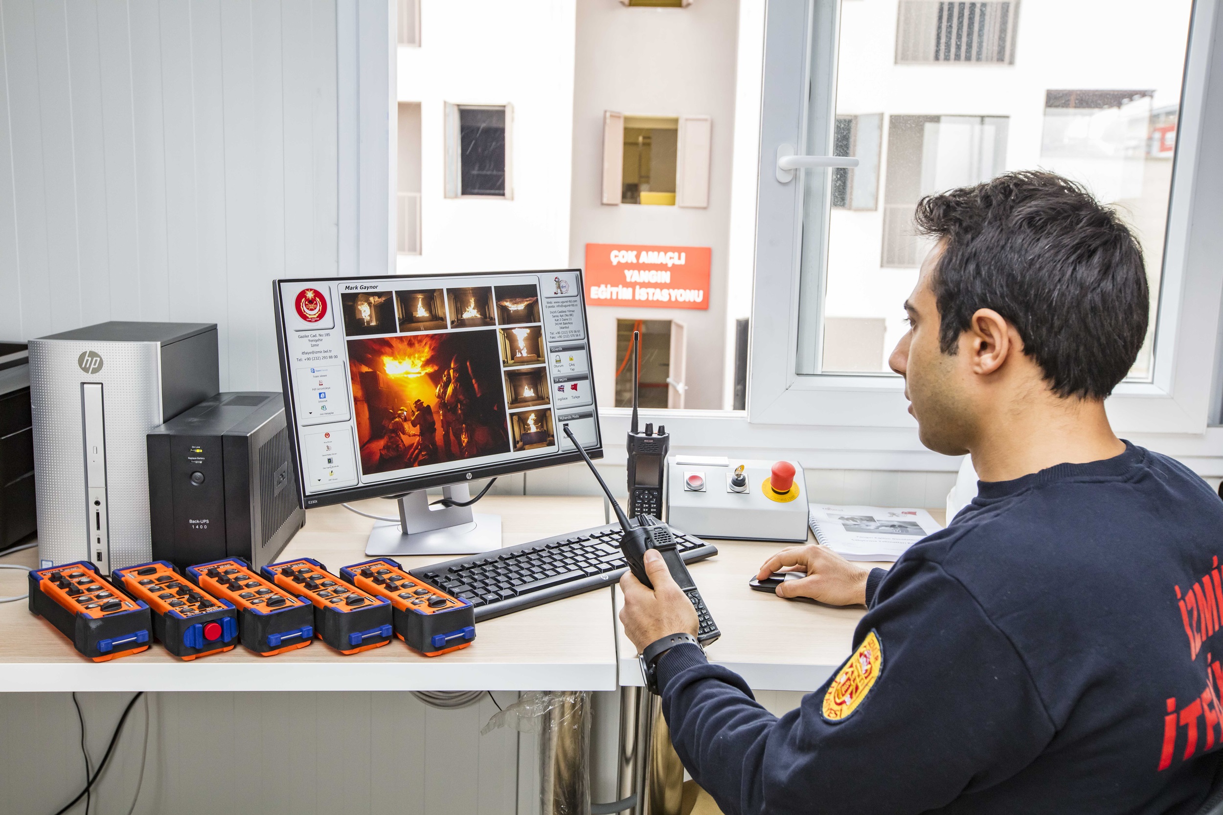 İtfaiye erlerinin eğitimi ve can güvenliği açısından kritik önem taşıyan binaya, el kumanda cihazıyla da dışarıdan müdahale edilebiliyor. Yangının başlatılması, ışıkların kontrolü ve arama kurtarma bölümündeki duman havalandırması hem el kumanda cihazından hem de bilgisayar üzerindeki operatör yardımıyla yapılabiliyor. El kumanda cihazında bulunan pim sayesinde ise itfaiye erleriyle ilgili bir risk görüldüğünde emniyet sistemleri devreye giriyor ve istenmeyen durumların önüne geçiliyor.