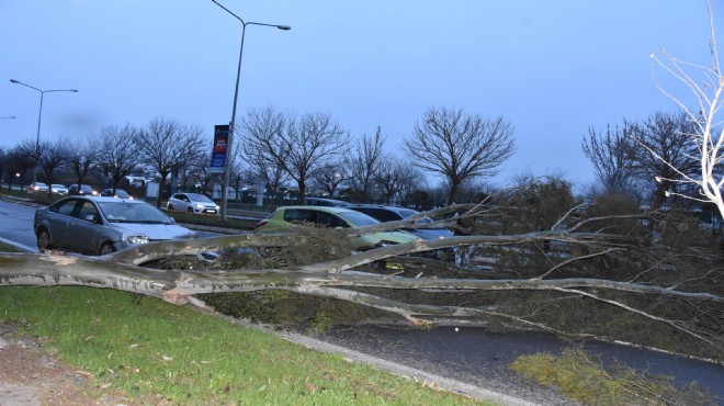 İzmir'in Balçova ilçesi İnciraltı bölgesinde, saat 18.00 sıralarında bir ağaç yola devrildi. Bu sırada seyir halinde olan 3 araç da, devrilen ağacın altında kaldı. Araçlarda bulunanlar olaydan yara almadan kurtuldu. Araç sahiplerinden Emrah Dilenç (31), "Ağaç devrildi. Bir anda fren yaptım ama aracın üstüne devrildi" dedi. Kendisine bir zarar gelmediğine şükrettiğini söyledi. Araçta eşi ve çocuklarının bulunduğunu söyleyen sürücülerden Süleyman Alper ise, "Eşim ve çocuklarımla birlikte Konak yönüne gidiyorduk. Arabayla giderken birden ağaç devrildi. Ağacın devrildiğini görünce frene bastım. Allah'a şükür durabildim. Çok şükür kimseye bir şey olmadı" diye konuştu. Yaşanan olayın ardından yol tek taraflı olarak trafiğe kapatıldı. Fırtınanın saatteki hızı ise zaman zaman 76 kilometreye kadar çıktı.