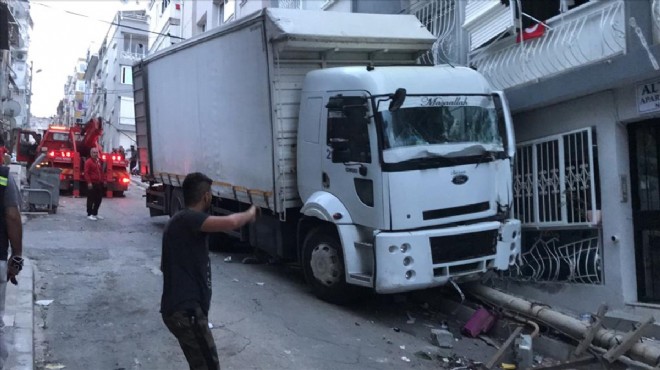 Yokuş aşağı hızlanarak inen kamyon, apartmanlara ve elektrik direğine çarparak durabildi.