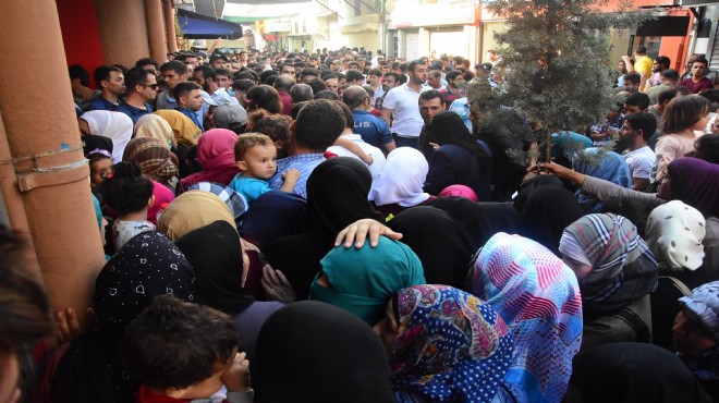 Yaşanan izdihamda, bazı Suriyeli bebekler ezilme tehlikesi geçirdi. Durumun bildirilmesi üzerine gelen Konak İlçe Emniyet Müdürlüğü ekipleri, Suriyelileri sıraya sokmaya çalıştı.