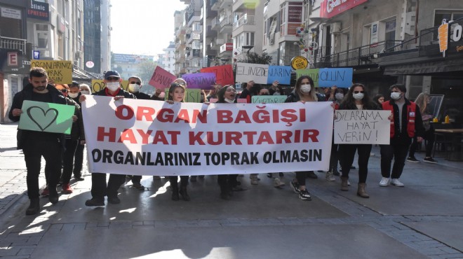 Sağlık sorunları nedeniyle uzun yıllar organ bekleyen İzmirli gençler, organ bağışı konusunda farkındalık oluşturmak için birlikte yürüyüş yaptı. Çevredekilerin desteğiyle Konak ilçesi Kıbrıs Şehitleri Caddesi'nde yürüyen gençler, herkesi organ bağışı yapmaya çağırdı. Karın ağrısı şikayeti üzerine başvurduğu hastanede, kronik böbrek yetmezliği hastası olduğunu öğrenen Dilek Gençyılmaz, 6.5 yıldır diyalize girdiğini, iki kez bağışçı bulunduğu haberi gelse de kan ve doku uyuşmazlığı nedeniyle organ nakli gerçekleşmediğini söyledi. Haftanın 3 günü 8 saat diyalize giren Gençyılmaz, organ bağışı yetersiz olduğu için hayatını kaybeden insanlar olduğunu hatırlatarak, seslerini duyurmak için yürüyüş düzenlemeye karar verdiğini anlattı. Kalp nakli olduktan sonra sağlığına kavuşan Osman Can'ı da yürüyüşe davet ettiğini anlatan Gençyılmaz, "Ben uzun süredir diyalize girerek hayatımı devam ettiriyorum. Ama kalp, akciğer ve karaciğer nakli bekleyen insanlar belli bir süre geçtikten sonra maalesef hayatlarını kaybediyor. Gördükleri tedavilere yanıt vermiyorlar. Ben de ülkemizde organ bağışı yetersiz olduğu için insanları bilinçlendirmek adına yürüyüş düzenliyorum. Yaklaşık 3 haftadır bu yürüyüşü planlıyorum" dedi.