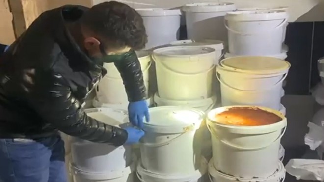 İzmir'in Kemalpaşa ilçesindeki bir büyükbaş besi çiftliğinde sağlıksız koşullarda üretilen 8 ton salça ve 12 ton çeşitli gıda maddesine el konuldu.