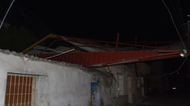 00.30 sıralarında Konak ilçesi Selçuk Mahallesi'nde 5 katlı bir binanın çatısı etkili olan fırtına nedeniyle uçtu. Arka sokağa düşen çatı, elektrik tellerine takılarak havada kaldı. Mahalle sakinleri, AFAD, Gediz Elektrik ve itfaiye ekiplerine haber verdi. Gelen Gediz Elektrik ekipleri, elektriği keserken, AFAD ekipleri ise çatının bulunduğu yere güvenlik şeridi çekerek önlem aldı. Mahalle sakinleri de olumsuz bir durum yaşanmaması için bölgede nöbet tutmaya başladı.