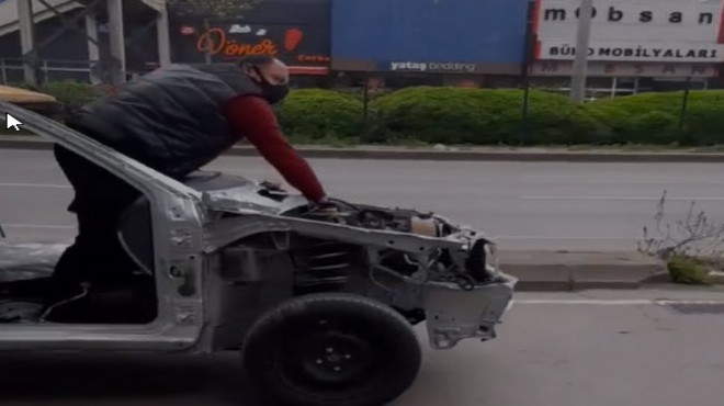 Karabağlar ilçesi, Yeşillik Caddesi üzerine kayda geçen bir görüntü görenleri hayrete düşürdü. Yüzünde maskesi bulunan ve kimliği öğrenilemeyen sürücü, kazalı taksiyi iddiaya göre tamir ettirmek için yola çıktı. Söz konusu sürücü, aracın ön camından çıkarak gaz ayarını eliyle yaptı. Bu tehlikeli anlar ise başka bir sürücü tarafından saniye saniye görüntülendi. (DHA)