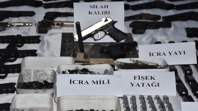 İzmir Cumhuriyet Başsavcılığı'nın talimatıyla İl Emniyet Müdürlüğü Organize Suçlarla Mücadele Şube Müdürlüğü ekipleri, kentte kaçak olarak kurulan fabrikada silah ve mühimmat imalatı yapıldığı bilgisi üzerine harekete geçti.