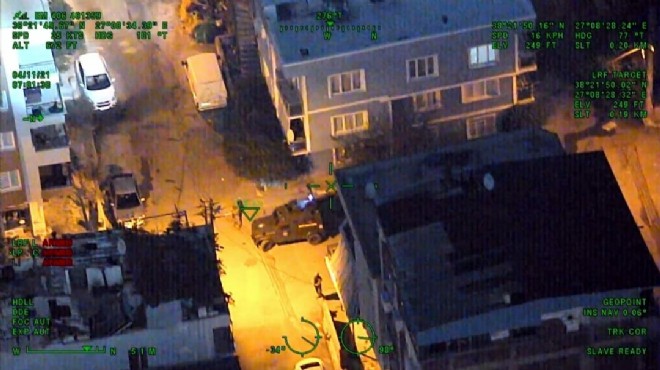 İzmir'de düzenlenen helikopter destekli operasyonda çeşitli suçlardan aranan 13 kişi gözaltına alındı.