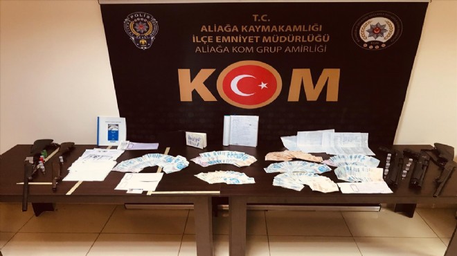 Aliağa Kaçakçılık ve Organize Suçlarla Mücadele Grup Amirliği ekipleri, Kınık, Torbalı, Bergama, Foça ilçesi ile Manisa'nın Soma ilçesinde eş zamanlı operasyon düzenledi.