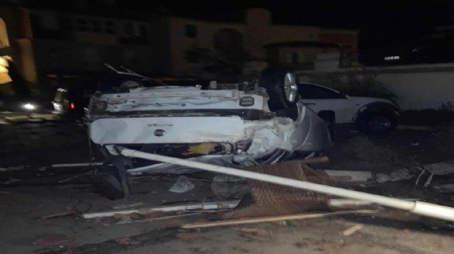Büyükşehir Belediyesi'nden yapılan açıklamada, Çeşme Alaçatı Port bölgesinin inşaat alanında, aşırı yağış ve fırtınayla birlikte meydana gelen hortumda, konteyner ve vinç direği devrildiği ve bazı evlerin çatılarının uçtuğu bildirildi.