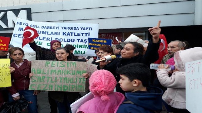 "Özgürlük istiyoruz" sloganı atan gruptakiler, 'FETÖ hakimlerinin verdiği kararlar geçersizdir', 'Adlı mahkuma ceza indirimi ve şartlı tahliye', 'Sen sokağa çıkın dedin biz çıktık, şimdi de kapıları açın mahkumlar çıksın' yazılı dövizler taşıdı. Tutuklu ve lükümlü yakınları, Cumhurbaşkanı Recep Tayyip Erdoğan'a seslenip, af çıkarılması çağrısı yaptı.