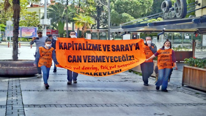 İzmir'de Halkevleri üyeleri, koronavirüs salgınıyla mücadele kapsamında getirilen sokağa çıkma kısıtlamasına rağmen Emek ve Dayanışma Günü dolayısıyla sokağa çıkarak, izinsiz yürüyüş ve açıklama yapmak istedi. Alsancak semtinde bulunan Kıbrıs Şehitleri Caddesi'nden Gündoğdu Meydanı'na yürüyen grup, ellerindeki pankartlarla yürümek istedi. Meydana girmelerine izin verilmeyen 5 kişi, polis ekiplerince gözaltına alındı. Sokağa çıkma kısıtlamasını ihlal ettikleri gerekçesiyle haklarında idari işlem yapılan 5 kişi, serbest bırakıldı. (DHA)