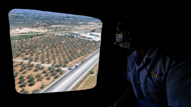 İl Jandarma Komutanlığından havalanan helikopter, Kemalpaşa, Bayındır ve Torbalı ilçelerinde havadan trafik denetimi yaptı.