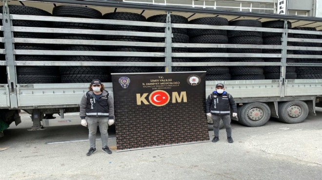 İzmir İl Emniyet Müdürlüğü Kaçakçılık Suçlarıyla Mücadele Şube Müdürlüğü ekipleri, kente çok sayıda gümrük kaçağı ağır vasıta araç lastiği getirileceği bilgisi üzerine harekete geçti. Teknik ve fiziki takibin ardından durdurulan şüpheli bir TIR'da yapılan aramada, piyasa değeri yaklaşık 2 milyon TL olan, 268 ağır vasıta araç lastiği ele geçirildi. İmha edilmek üzere el konulan lastiklerin gerekli kriterlere uymadığı ve sürüş güvenliğini tehlikeye attığı bildirildi. Şüpheli, 2 kişi hakkında adli işlem başlatıldı.  Şüpheliler, polisteki ifadelerinin ardından serbest bırakıldı. (DHA)