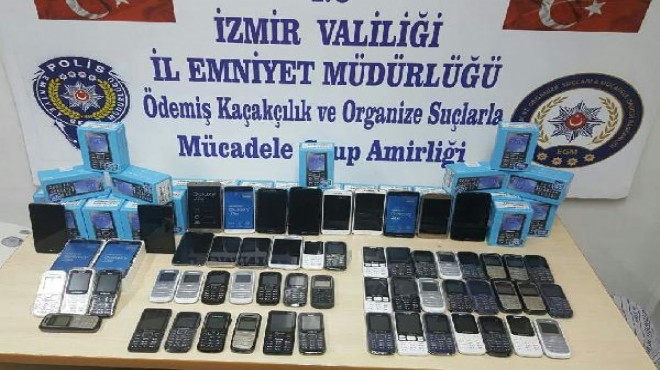 Kaçakçılığın önlenmesi ve men edilmesine yönelik çalışmalarla, yurda kaçak yollardan girişi olduğu değerlendirilen kayıt dışı cep telefonu satışı yapılan işletmelerin olduğu bilgisine ulaşan Ödemiş İlçe Emniyet Müdürlüğü Kaçakçılık ve Organize Suçlarla Mücadele Grup Amirliği ekipleri operasyon düzenledi. Dün 3 işyerine eş zamanlı yapılan operasyonda gümrük kaçağı 89 cep telefonu ve faturasız 30 adet cep telefonu yan ürünü ele geçirildi. İşyeri sahipleri hakkında hakkında, adli ve idari işlem başlatılması için '5607 Sayılı Kaçakçılıkla Mücadele Kanununa Muhalefet' suçundan tutanak tutuldu. (DHA)