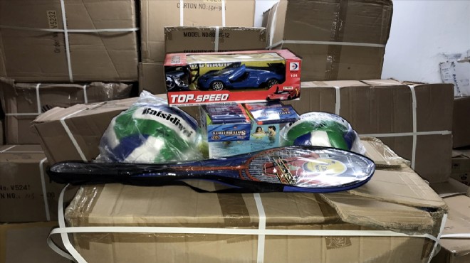 Depolardaki aramada, oyuncak araba, tenis raketi, futbol topu ve şişme havuz gibi çeşitli ebatlarda toplam 154 bin kaçak oyuncak ele geçirdi. Oyuncaklar muhafaza altına alındı.