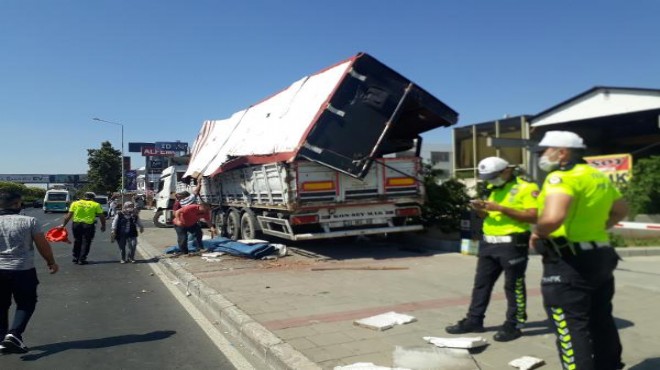 Kaza, saat 14.30 sıralarında, Gaziemir ilçesi Akçay Caddesi üzerinde meydana geldi. Gaziemir'den Konak yönüne giden Alpaslan B. Yönetimindeki 20 BKS 83 plakalı TIR’ın dorsesindeki arızalı kamyon üst geçide takıldı. Çarpma nedeniyle üst geçitte hasar meydana geldi. Üst geçidin yıkılmamasıyla olası facia önlendi. Kaza sonrası bir süre yoğunlaşan trafik, TIR'ın yol kenarına çekilmesiyle normale döndü.(DHA)