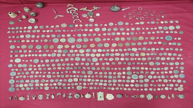 İzmir'de bir kamyonda tarihi eser niteliği taşıdığı değerlendirilen 552 sikke ile 80 parça küçük metal eşya bulunmasıyla ilgili bir şüpheli gözaltına alındı.
