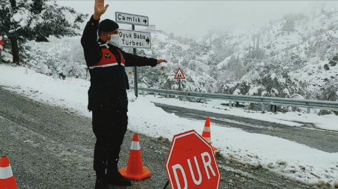 İzmir'in Beydağ ilçesinde kar yağışı nedeniyle Nazilli Karayolu trafiğe kapandı. Ekipler, yol açma çalışmalarını sürdürürken, mahsur kalan vatandaşlar kurtarıldı.