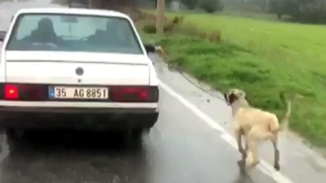 Menderes ilçesine bağlı Oğlananası Mahallesi yakınlarında K.Ş., sahibi olduğu çoban köpeğini otomobiline bağlayıp evi ile tarlası arasında kilometrelerce koşturdu, bitkin düşen hayvan zaman zaman yerde sürüklendi. Bu anlar arkadan gelen araçtakiler tarafından cep telefonuyla görüntülenerek sosyal medyada paylaşıldı. Görüntüler üzerine durumdan haberdar olan Menderes İlçe Jandarma Komutanlığı ekipleri, harekete geçti. Görüntülerdeki aracın plakasından köpeğin sahibi olan K.Ş.'ye ulaşıldı. Köpeğini evinden tarlasına götürmek isteyen K.Ş.'nin, otomobilinin koltuklarının kirlenmemesi için onu araca bağladığı öğrenildi.