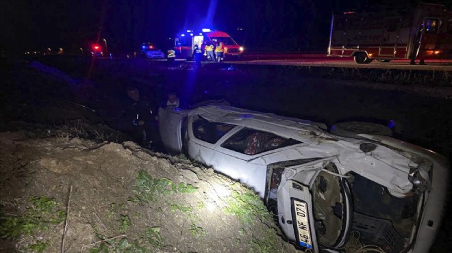 İzmir'in Tire ilçesinde devrilen otomobildeki 1 kişi hayatını kaybetti, 2 kişi yaralandı.