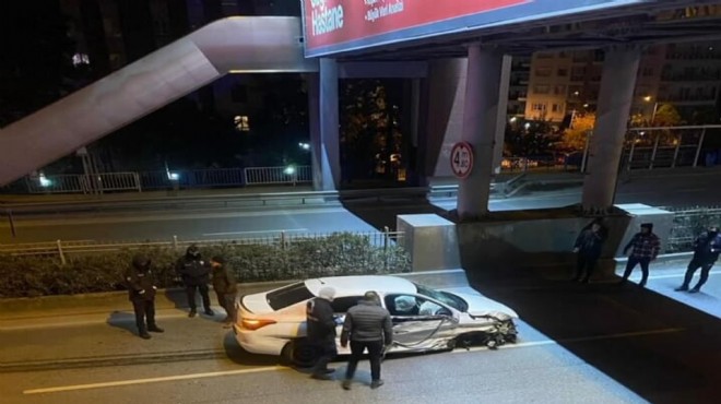 İzmir'in Bayraklı ilçesinde refüje çarpan otomobildeki 2 kişi yaşamını yitirdi.