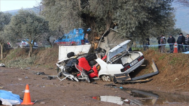 İzmir'in Ödemiş ilçesinde otomobilin ağaca çarpması sonucu 2 kişi hayatını kaybetti, 3 kişi yaralandı.
