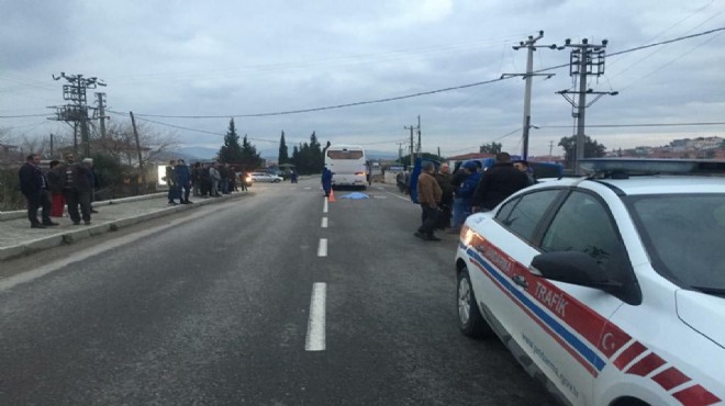 Kaza, dün saat 18.30 sıralarında, Yenibağarası Mahallesi yol ayrımı yakınlarında meydana geldi. Mesai bitimi Foça ilçesinden İzmir kent merkezi yönüne askeri personel taşıyan A.A. (64) yönetimindeki 35 S 54525 plakalı servis otobüsü yolun karşısına geçmeye çalışan Kadriye Sarıalan'a çarptı. Emekli hava astsubayın eşi olan ev kadını Sarıalan, kaza yerinde yaşamını yitirdi.