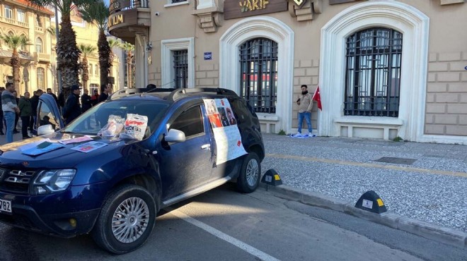 Konak ilçesi Cumhuriyet Bulvarı'na saat 13.00 sıralarında otomobili ile gelen bir kişi, araçtan inip, elindeki İsrail bayrağını yere serdi.
