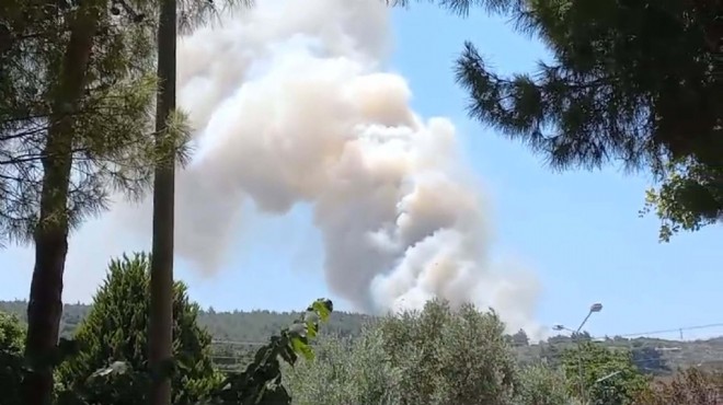 Yükselen dumanları fark eden mahallelinin ihbarı üzerine bölgeye İzmir Orman Bölge Müdürlüğü'ne ait 5 uçak, 9 helikopter, 25 arazöz, 7 su ikmal aracı, 3 dozer ve 3 yer ekibi sevk edildi. Ekipler, alevlere müdahale ediyor.