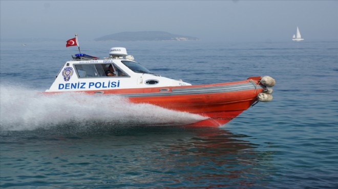 Sertifika töreninin ardından İzmir Emniyet Müdürlüğü Deniz Limanı Şube Müdürlüğüne bağlı polis botu gösteri yaptı. (AA)