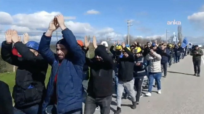 "İşçi hakkını aramak için yollara düştü. Burada Polyak Eynez Ocağı'ndan Kınık Meydanı'na yürüyoruz. Kardeşlerimizin üç tane talebi var; birincisi maaşlarının yatması, ikincisi banka promosyonu, üçüncüsü ise en kırmızı çizgimiz olan geriye dönük özlük haklarının garanti altına alınması. Bu kardeşlerimizin talepleri verilmediği sürece bugün Kınık'a yürüdük, yarın İzmir'e yürürüz, sonra da Ankara'ya yürüyebiliriz. Bir an önce bu işçi kardeşlerimizin hakkını versinler. Vermezlerse, biz Bağımsız Maden İş Sendikası olarak bu işçi kardeşlerimizin yanında duracağız ve bu meseleyi çözülene kadar bırakmayacağız.