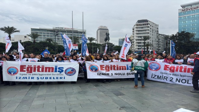 İş bırakan memurlar Kültürpark ve Konak Atatürk Meydanı yakınında toplandı, Cumhuriyet Meydanı'na yürüdü.