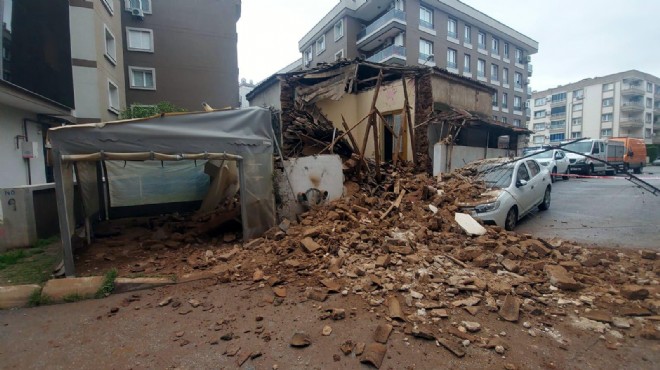 Olay, saat 10.00 sıralarında meydana geldi. Atıfbey Mahallesi'ndeki 2 katlı metruk binanın bir bölümü gürültüyle çöktü. Binanı bir bölümü park halindeki 35 AGZ 986 plakalı otomobilin üzerine yıkıldı. Otomobilin ön bölümü büyük hasar gördü. Çevredeki vatandaşlar, durumu itfaiye, polis ve sağlık ekiplerine bildirdi. Olay yerine Gaziemir Belediyesi zabıta ekipleri ile AFAD ekipleri sevk edildi. Ekipler, güvenlik şeridi çekerek sokağı araç ve yaya trafiğine kapatırken, kokuya duyarlı köpeklerle enkazda arama yapıldı. Yapılan kontrollerde, binada kimsenin yaşamadığı ve olayda yaralanan olmadığı belirlendi. Öte yandan, Anıtlar Kurulu tarafından binanın tarihi değeri nedeniyle tescilli olduğu, bu yüzden de izinsiz herhangi bir işlem yapılamadığı öğrenildi.