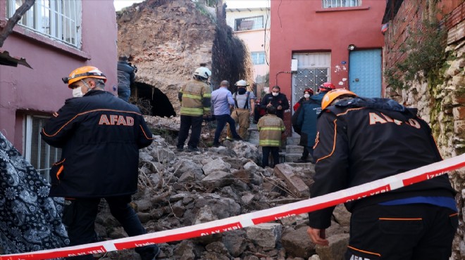 İzmir'in Konak ilçesinde metruk sinagogun duvarının çökmesi sonucu kopan taşlar, yandaki apartmanda oturan bir kişinin yaralanmasına yol açtı.