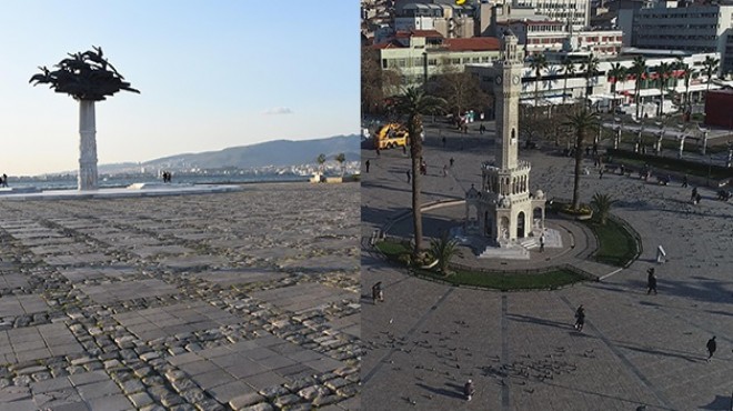 Dünyaya yayılan ve 8 binin üzerinde kişinin ölümüne neden olan koronavirüs salgınının Türkiye'de görülmesinin ardından alınan tedbirler kapsamında sosyal hayatın kısıtlanması üzerine İzmir'de sokaklar ve meydanlar boşaldı. 7 gün 24 saat yoğunluğun hiç azalmadığı Konak ve Gündoğdu meydanları, tenha görünümleriyle dikkat çekti. Meydanlarda olan vatandaşların ise tedbirlere uyarak eldiven ve maske ile dışarı çıktığı ve yoğunlukla dezenfektan ile kolonya kullandıkları görüldü. Dışarıda olan kişilerin çoğu ise çalışmak için evden çıktıklarını söyledi.