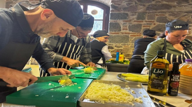 İzmir Büyükşehir Belediyesi’nin Meslek Fabrikası’nda düzenlediği sağır ve işitme engelli kursiyerlere yönelik pastacı çıraklığı kursundan mezun olan kursiyerler, İzmir Çeşme’de restoranı bulunan ve sosyal medya platformlarında birbirinden özel tariflerini paylaşan şef Rıfat Yurttaş ile buluştu. Engelli Çalışmaları Şube Müdürlüğü’nde görevli işaret dili çevirmenleri Özlem Özer ve Melek Uslular’ın çevirmenliğiyle katılımcılarla iletişim kuran Yurttaş, onlarla birlikte Ege mutfağına ait meze ve zeytinyağlı yemekler yaptı.