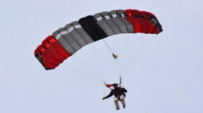 Konuşmaların ardından Türk Hava Kurumu'nun paraşütçüleri, 12 bin fitten tandem atlayış gerçekleştirdi. Paraşütçülerinden biri Türk bayrağı, biri de Atatürk fotoğrafının bulunduğu posterle atlayış yaptı. Şenliğe katılanlar bu atlayışa büyük ilgi gösterdi.