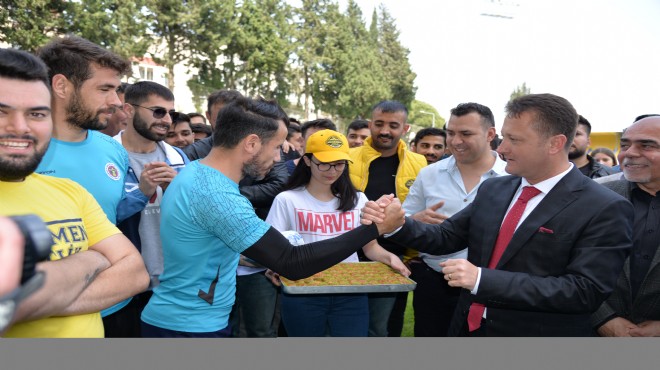 Başkan Aksoy, bugün sözünü tuttu ve ödemeyi gerçekleştirmek için futbolcuları antreman sahasında ziyaret etti. Önce sahada futbolculara baklava ikram ederek tek tek tokalaşan Menemen Belediye Başkanı Serdar Aksoy, sporculara yeni bir söz daha verdi. Aksoy, “Bandırmaspor ile olan maçtaki galibiyeti kutlarım. Mükemmel bir maçtı. Önümüzdeki gerçekleşecek olan maçta da, takımız şampiyonluğu kazandığı takdirde futbolcu başına 10 Bin TL primi şahsi hesabımdan ödeyeceğim” diyerek takıma başarılar diledi.