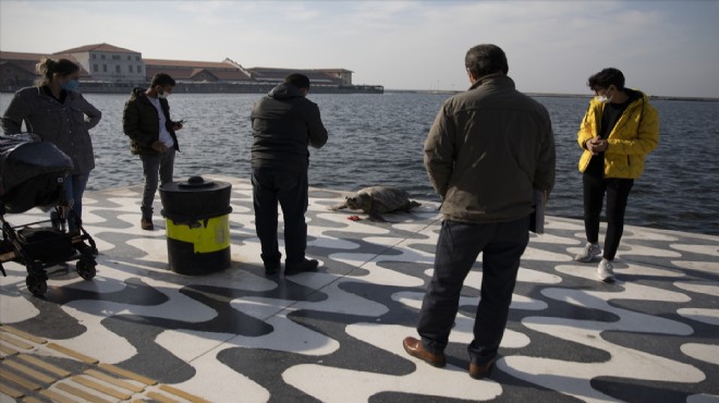 İzmir'in Konak ilçesinde kıyıda, ölmüş caretta caretta bulundu.
