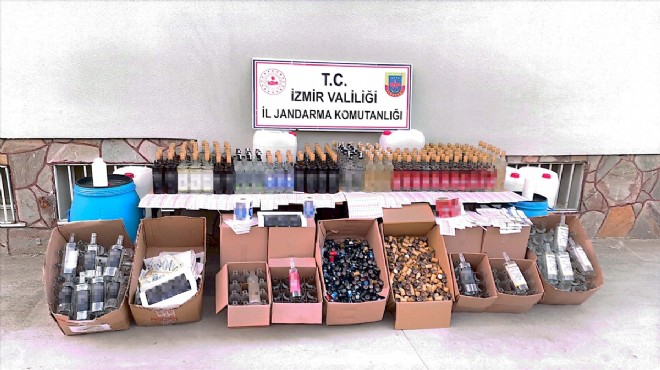 Valilikten yapılan açıklamaya göre, İl Jandarma Komutanlığı ekipleri, Kemalpaşa ve Seferihisar ilçelerinde sahte içki üretimi yapılan 4 adrese baskın düzenledi.