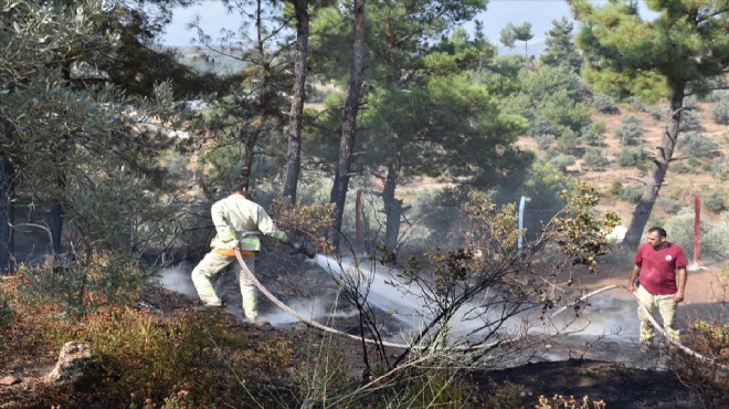 Vatandaşların haber vermesi üzerine İzmir Orman Bölge Müdürlüğüne bağlı 3 helikopter ve 7 arazözle yangına müdahale edildi.