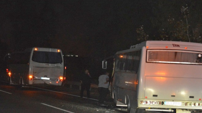 Alınan bilgiye göre, İzmir-Çanakkale kara yolunda kağıt fabrikası yakınlarında E.S'nin (60) kullandığı 35 S 95556 plakalı servis minibüsü ile aynı yönde ilerleyen M.O'nun (36) kullandığı 35 S 02270 plakalı servis otobüsü çarpıştı.
