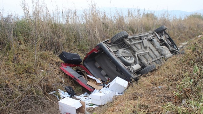 Balabanlı Mahallesi'nden Ödemiş istikametine giden Fatih Günaydın (23) yönetimindeki 06 BE 433 plakalı panelvan yol kenarına devrildi.