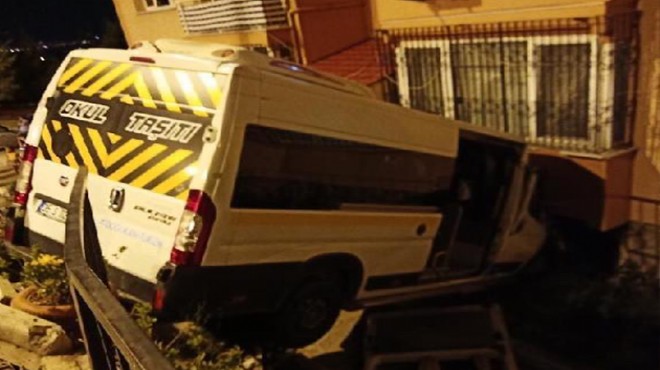 Kaza saat 23.30 sıralarında Egekent Mahallesi Merkez Cami Kavşağı’nda meydana geldi. İddiaya göre park halindeki minibüs, freninin boşalması sonucu kaymaya başladı. Yokuştan aşağıya doğru kontrolsuz şekilde giden servis minibüsü, yol kenarında bulunan demir korkulukları aşarak bir apartmmanın duvarına çarptı. Servis minibüsü asılı kalırken, şans eseri kazada ölen ya da yaralanan olmadı. Minibüsün çarptığı apartmanda oturanlar sarsıntı ile birlikte büyük korku yaşadı. Servis minibüsü ve apartmanda maddi hasarın meydana geldiği kaza ile ilgili soruşturma başlatıldı.(DHA)