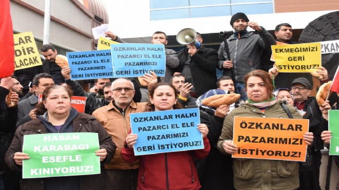 Ellerinde taşıdıkları ekmeklerle eyleme katılan yaklaşık 60 pazarcı adına basın açıklaması yapan Faysal Acar, "Bayraklı Belediyesi sınırları içinde 34 yıllık geçmişi olan Özkanlar pazar yeri, mahkeme kararı bahane edilerek, encümen kararıyla kapatılmıştır. Sorunun çözümü için 6 yıllık zaman dilimi olmasına rağmen hiçbir çözüm üretilmemiştir. Başka bir pazar yeri göstermeksizin, kapatılmıştır. Belediye, sorunu çözmek yerine esnafını ve semt halkını da mağdur etmiştir. Esnafın ekmeğini elinden almıştır. Esnafımız, vergi mükellefi olduğundan giderlerini karşılayamaz durumdadır. Geçim sıkıntısına düşmüştür. Belediye başkanının oturduğu makam, çözüm üretme makamıdır. Sorunun bir an önce çözülmesini ve ekmeğimizin geri verilmesini istiyoruz" dedi.