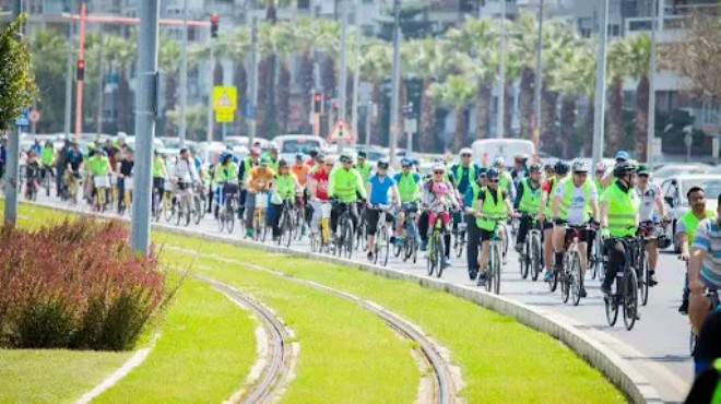 Bisikletliler, buradaki kontrollerin ardından pedal çevirmeye başladı. Turda katılımcılar, Mustafa Kemal Sahil Bulvarı'ndan ilerleyerek İnciraltı Kent Ormanı'na ulaştı. (AA)