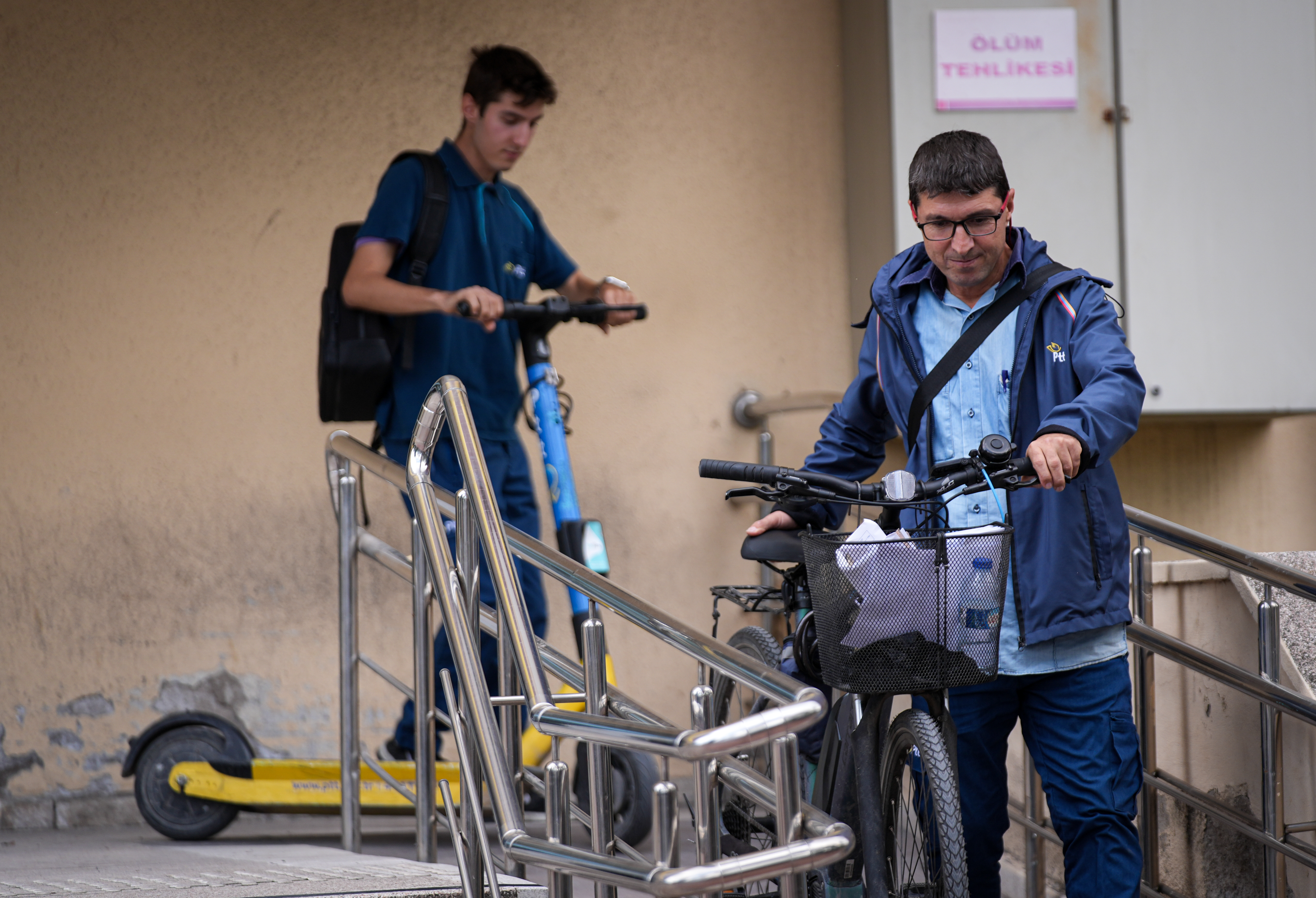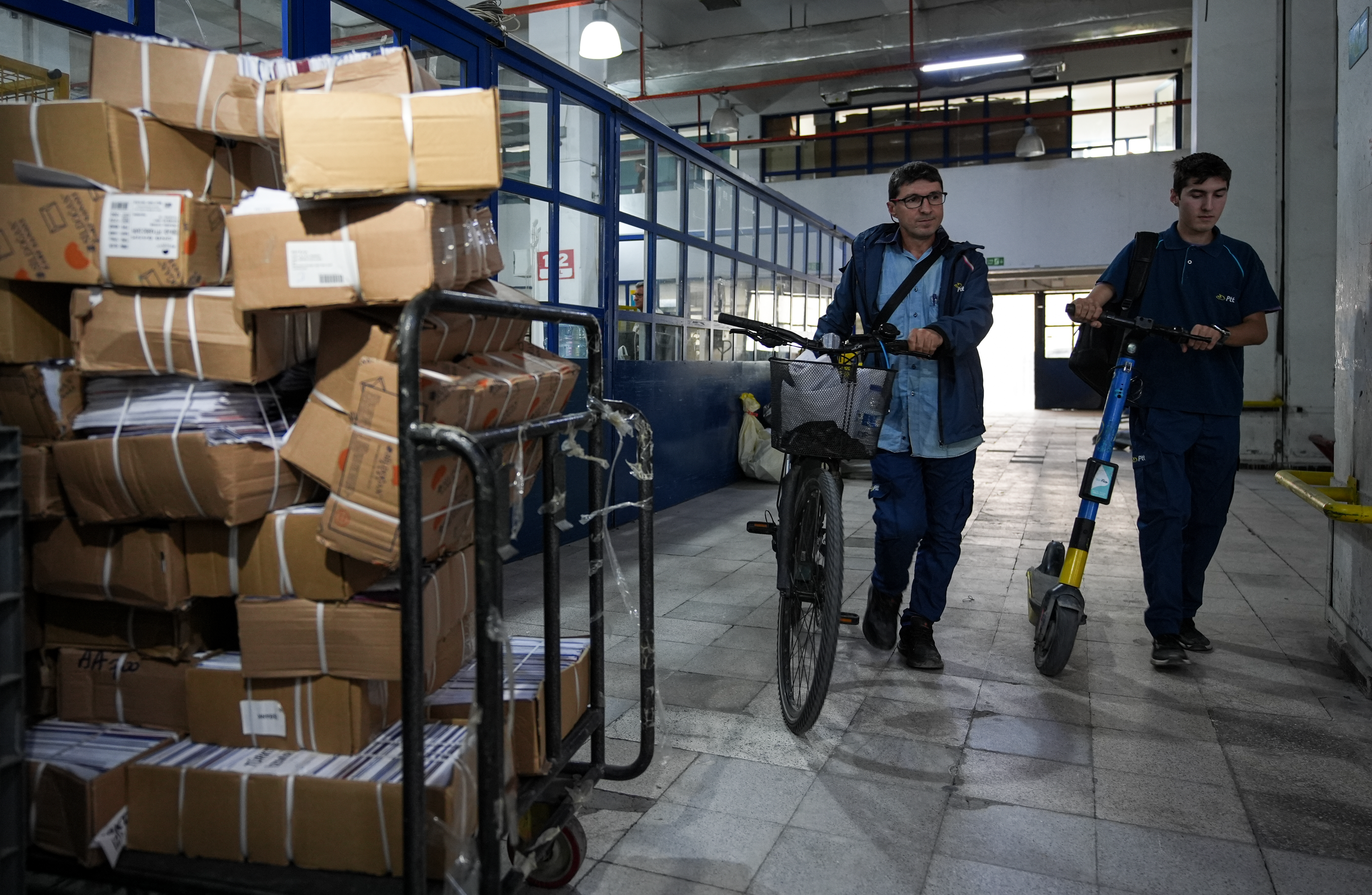 "Göreve ilk başladığımdaki merkezde 100 personelin kullanımı için 3 ya da 4 motor vardı. Şu an neredeyse personelin yüzde 80'i motorlu ya da araçla dağıtım yapıyor. Teknolojiye ayak uyduruluyor, skuter, bisiklet, motosiklet ve kargo araçlarıyla dağıtım sağlanıyor."