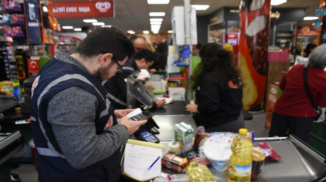 Ticaret Bakanlığı ve Tarım ve Orman Bakanlığı ekipleri, ramazan ayı öncesinde başta temel gıda ürünleri olmak üzere piyasada oluşabilecek fahiş fiyat artışı, stokçuluk, fiyat etiketi konusunda vatandaşların mağduriyet yaşamaması için 81 ilde eş zamanlı olarak marketlerde denetimlerini sürdürüyor. Bu kapsamda İzmir'de gerçekleştirilen denetimlerde; marketlerde bulunan ürünlerin fiyat etiketleri, muhafaza koşulları, son tüketim tarihleri kontrol edildi.