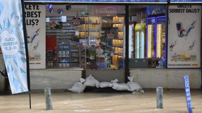 İzmir'de dün akşam saatlerinde başlayıp, aralıklarla devam eden sağanak etkisini sürdürürken, kent merkezindeki bazı cadde ve sokaklar suyla dolu. Yağmura hazırlıksız yakalananlar, zor anlar yaşadı. Yağış nedeniyle rögarlar taşarken, esnaftan bazıları dükkanlarına dolan suları kendi imkanlarıyla tahliye etmeye çalıştı. Bazı iş yeri sahipleri ise su baskınını önlemek için kapılarının önüne kum torbası yerleştirip, set oluşturdu.