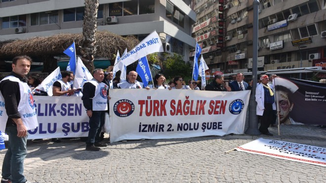 İzmir Sağlık Platformu bileşenleri, sağlık çalışanlarına yönelik şiddeti protesto etmek için bugün basın açıklaması yaptı. İzmir Tabip Odası, İzmir Aile Hekimleri Derneği (İZAHED), Birinci Basamak Sağlık Çalışanları Birlik Dayanışma Sendikası İzmir Şubesi, Sağlık ve Sosyal Hizmet Emekçileri Sendikası (SES) İzmir Şubesi, Genel Sağlık İş İzmir Şubesi ve Demokratik Sağlık Sen İzmir Şubesi üyelerinin bir araya geldiği açıklamada sık sık 'Sağlıkta şiddete son' sloganı atıldı. İzmir İl Sağlık Müdürlüğü'nün önüne siyah çelenk bırakan grup, 'Sağlıkta şiddete artık yeter', 'Sıra bize gelmeden şiddete son verelim', 'Şiddet varsa biz yokuz' yazılı dövizler taşıdı.